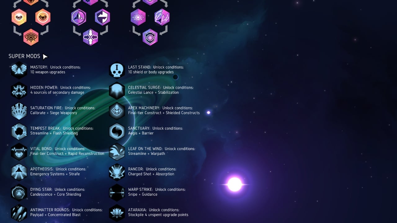 В процессе прохождения всех заготовленных миссий, геймер разблокирует 200 улучшений для своего космического корабля. Какие конкретно использовать – остаётся на выбор пользователя. Это решение создателей позволяет людям создавать максимально уникальные билды, подходящие под их стиль игры. Комбинируя модули, необходимо достичь баланса между эффективностью орудий и уровнем бронирования, чтобы преодолеть орды вражеских истребителей, рассекающих звёздное небо с находящимися на фоне планетами.