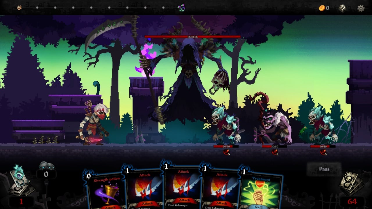 Костлявая преследует главного героя, выжидая момент, когда тот будет максимально слаб. Встречи с ней нужно избегать, пока не соберётся достаточно сильная колода, и тогда уже можно бросить вызов миру мёртвых. Три фракции, динамичный процесс и привычные правила игры затянут надолго фаната жанра TCG.