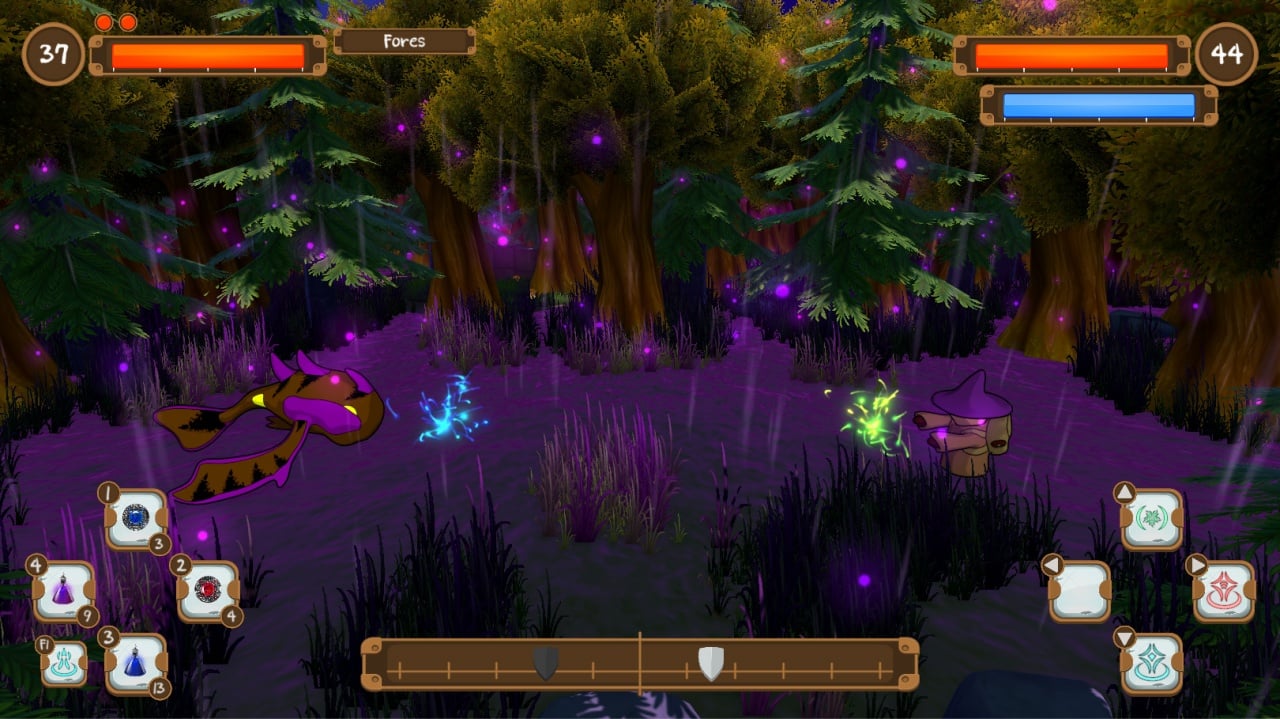 Протагонисту можно качать силу, ловкость, интеллект, здоровье, выносливость и защиту. От этих параметров зависит размер полосок жизни и маны, количество слотов под заклинания, а также их мощь и скорость каста. Игра позволяет комбинировать спеллы между собой. Сначала у колдуна при себе есть пара простеньких атакующих умений, вроде огненного шара. По мере прохождения он будет находить и получать новые волшебные способности. Также ему будут попадаться расходные предметы, восстанавливающие энергию и HP.