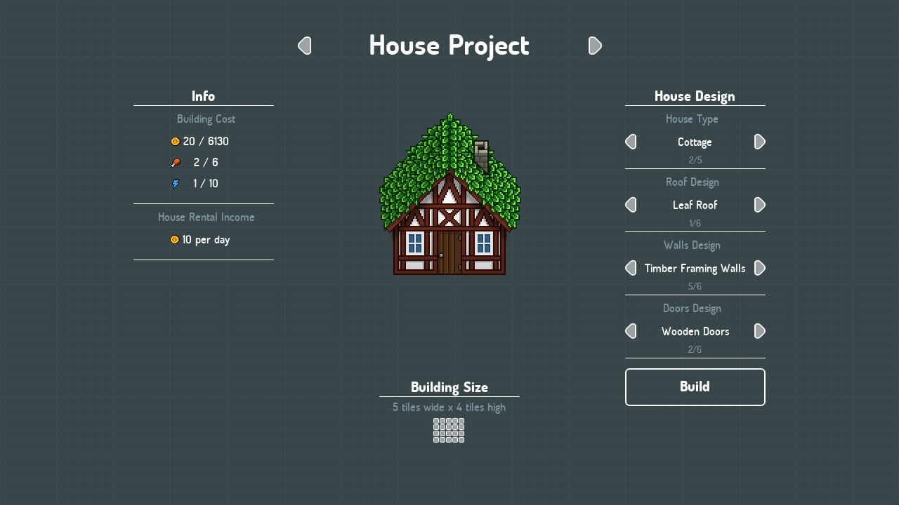 Молва о вашей деятельности разлетается с невероятной скоростью. Многие жители острова уже выстраиваются в очередь, чтобы снять или купить жилье в одном из лучших городов мира. Вам предстоит выбирать экстерьеры зданий, крыш и стен. Подстраивайте стиль окон и дверей под стать фасаду. Но ничто не мешает стать самым безумным архитектором и дизайнером, создавая самые невероятные дома.