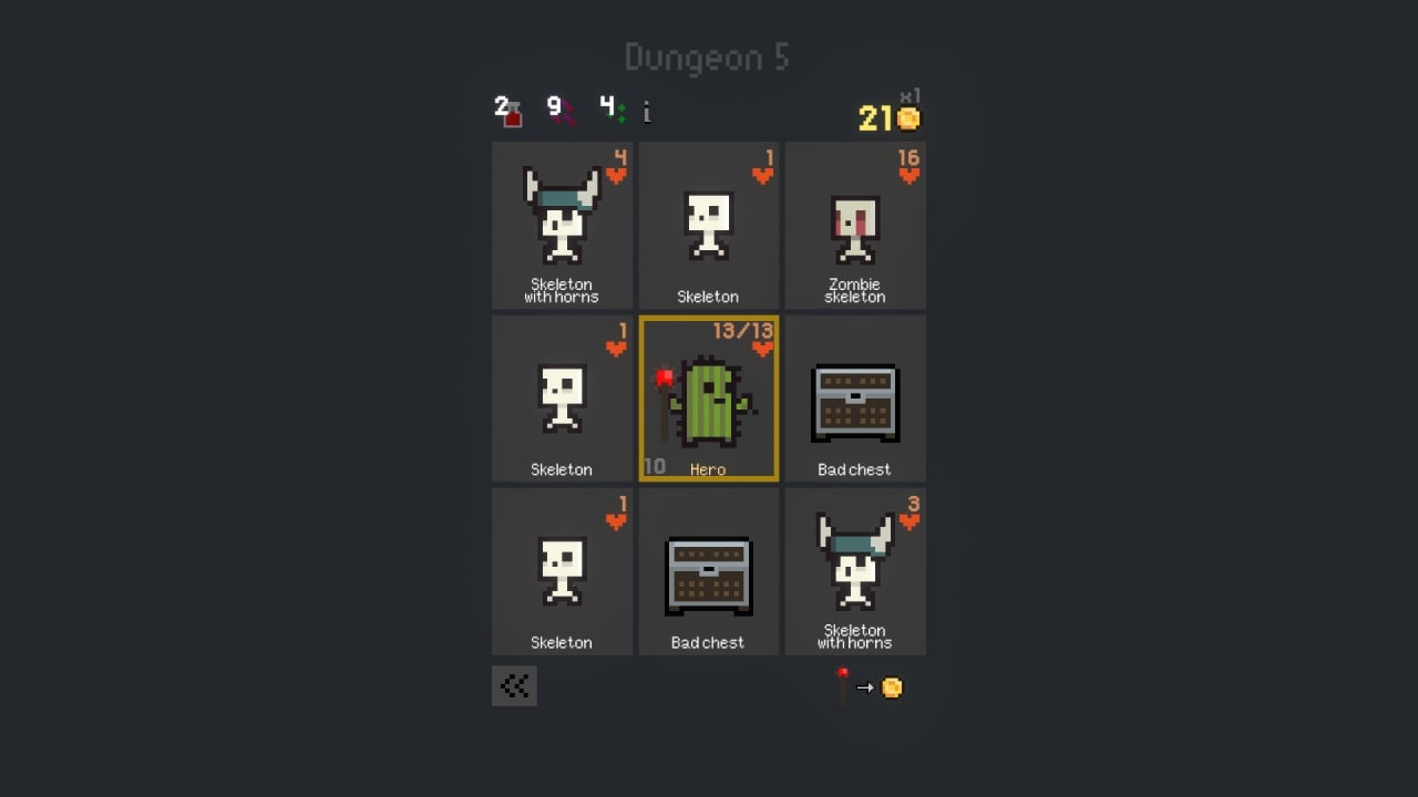 Dungeon Cards - карточная игра с элементами рокалика. Вам предстоит перемещать протагониста по полю из 9 карт. Чтобы сделать ход, необходимо выбрать карту по соседству. Происходит взаимодействие с героем, после чего данная карта исчезает с поля боя. Соприкасаясь с монстрами и ловушками, протагонист получает урон, лечебная карта пополняет здоровье, лут обогащает золотом, а чупакабра… впрочем, увидите сами.