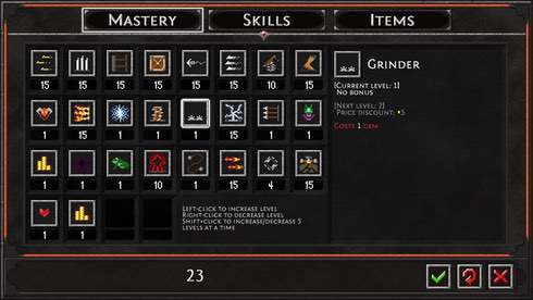 Вас ждет 60 вручную созданных уровней и огромное количество процедурно генерируемых локаций. На определенном этапе предстоит сразиться с боссом. Кампания включает 5 уникальных главарей, битва с которыми заставит по-настоящему попотеть! Прокачивая уровень героя, будут открываться пассивные навыки. Три ветки умений содержат по 11 способностей.